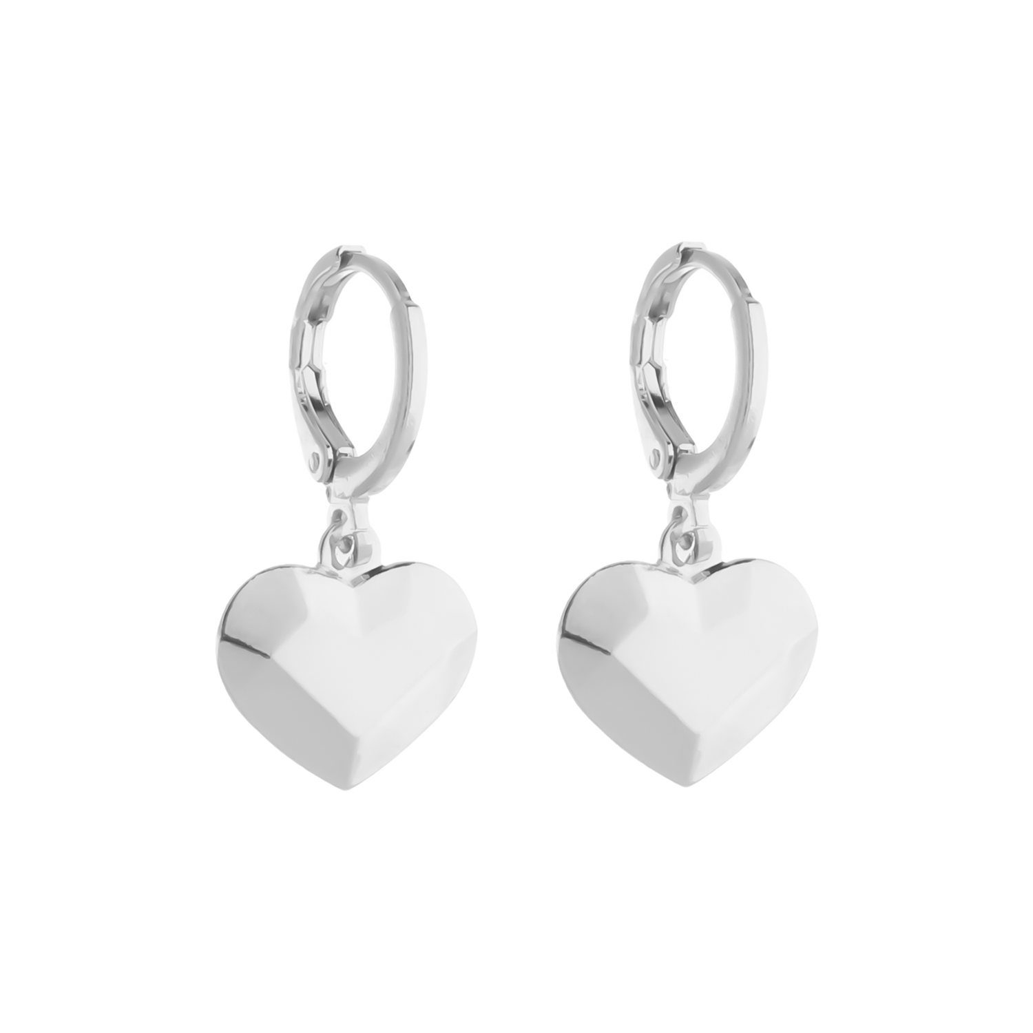 Brinco Prateado de Argolinha Coração Traços Retos